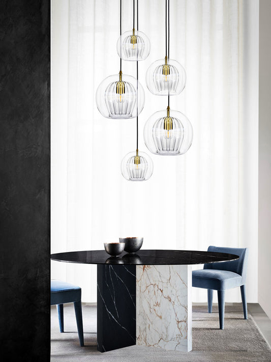 Pleated Crystal 5 Pendant Cluster Light