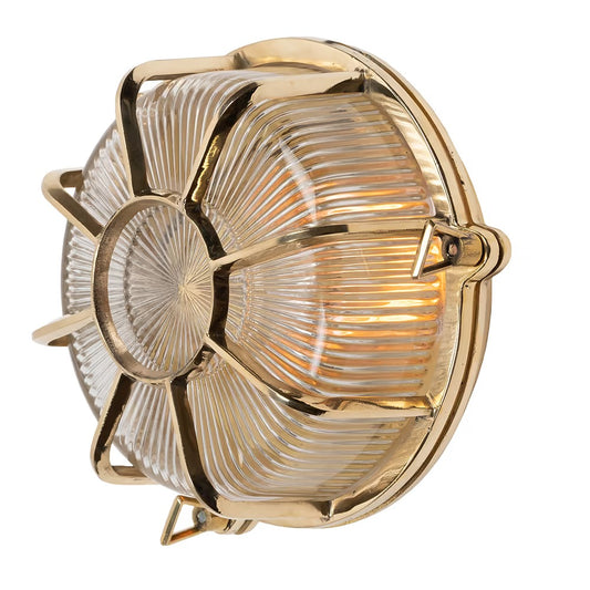 Soho Lighting Carlisle Web Prismatic Glass IP65 Outdoor & Bathroom Polished Solid Brass Bulkhead Wall Light
