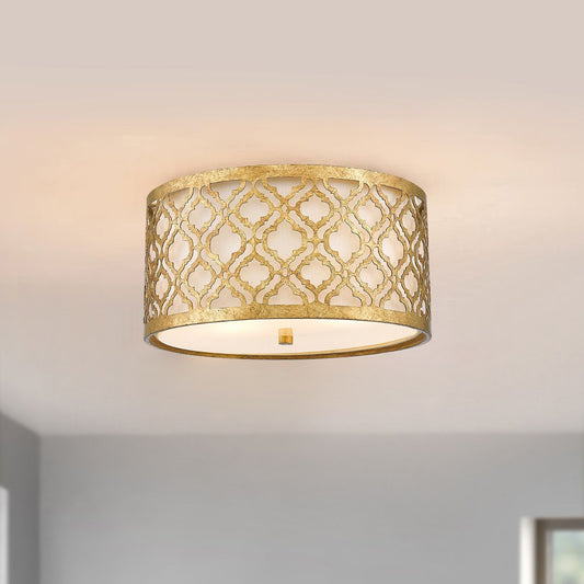 Arabella Light Flush in Distressed Gold, Ivory Shade
