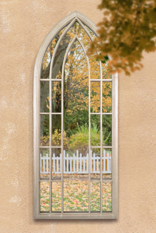 Somerley Large Stone-Colored Garden Mirror with Gothic Arch Design - 5ft3 x 2ft6 (160cm x 75cm)