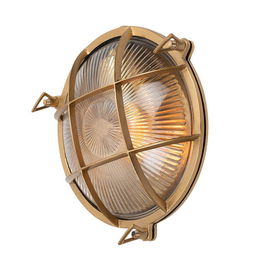 Soho Lighting Carlisle Grid Prismatic Glass IP65 Outdoor & Bathroom Laquered Solid Brass Bulkhead Wall Light