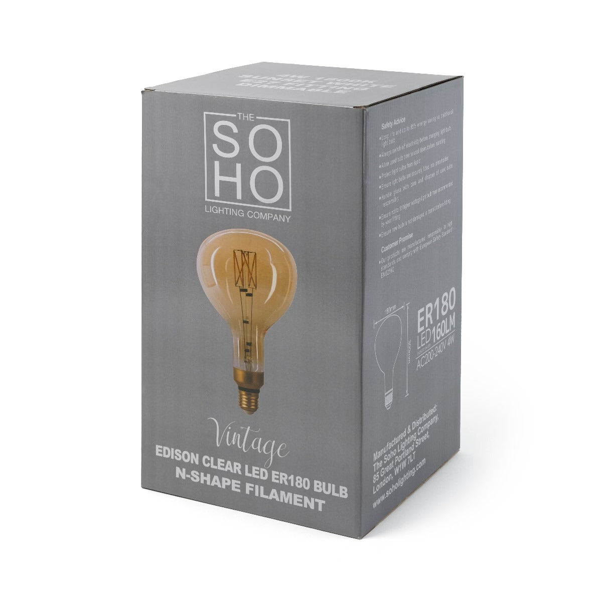 Make a bold style statement with this 4W E27 1800K Amber ER180 bulb from Soho Lighting. With its striking large size and N-shape filament, it delivers the classic Edison look plus the long-life, low-energy benefits of modern LED technology.